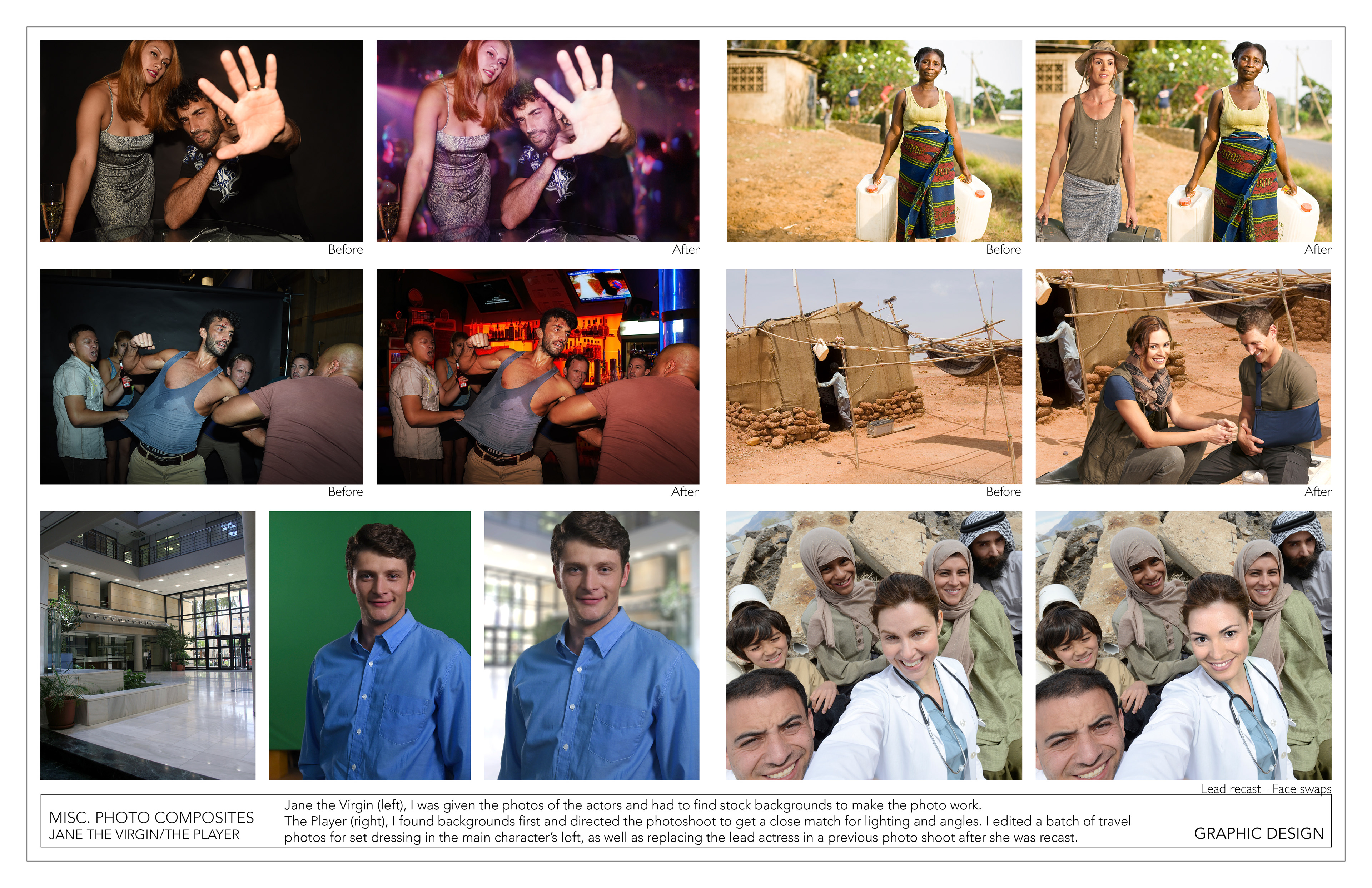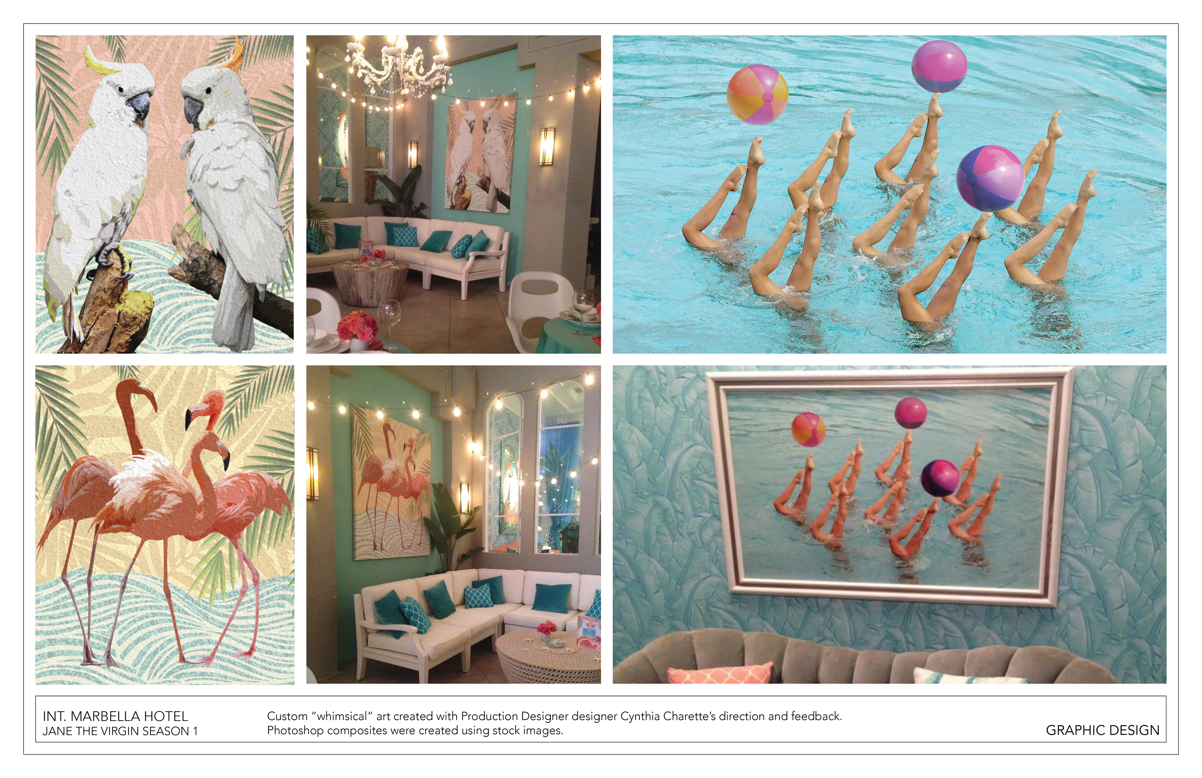 Completed graphics, artwork, and photoshopped images for set dressing or pre-vis conceptual use.