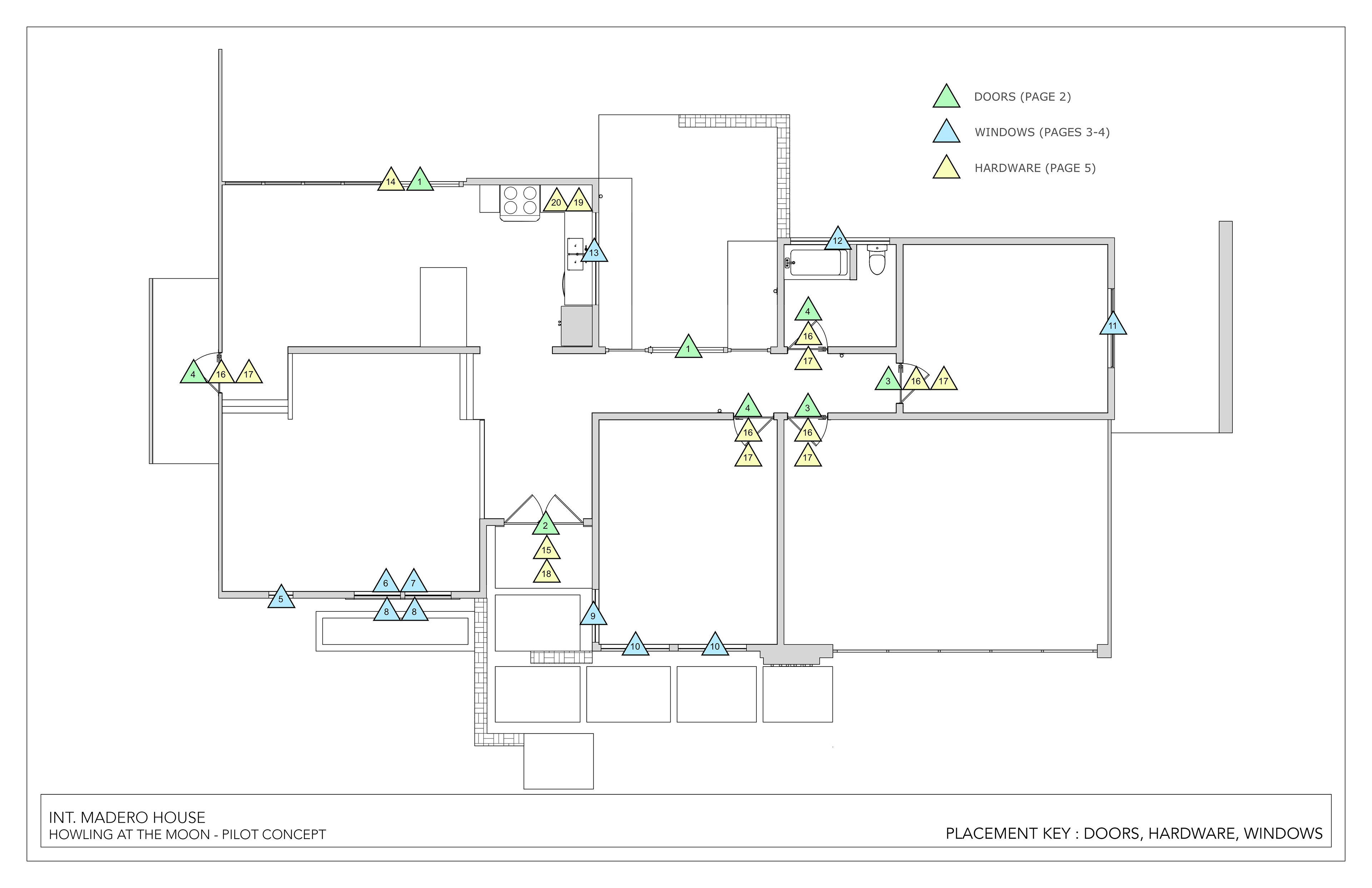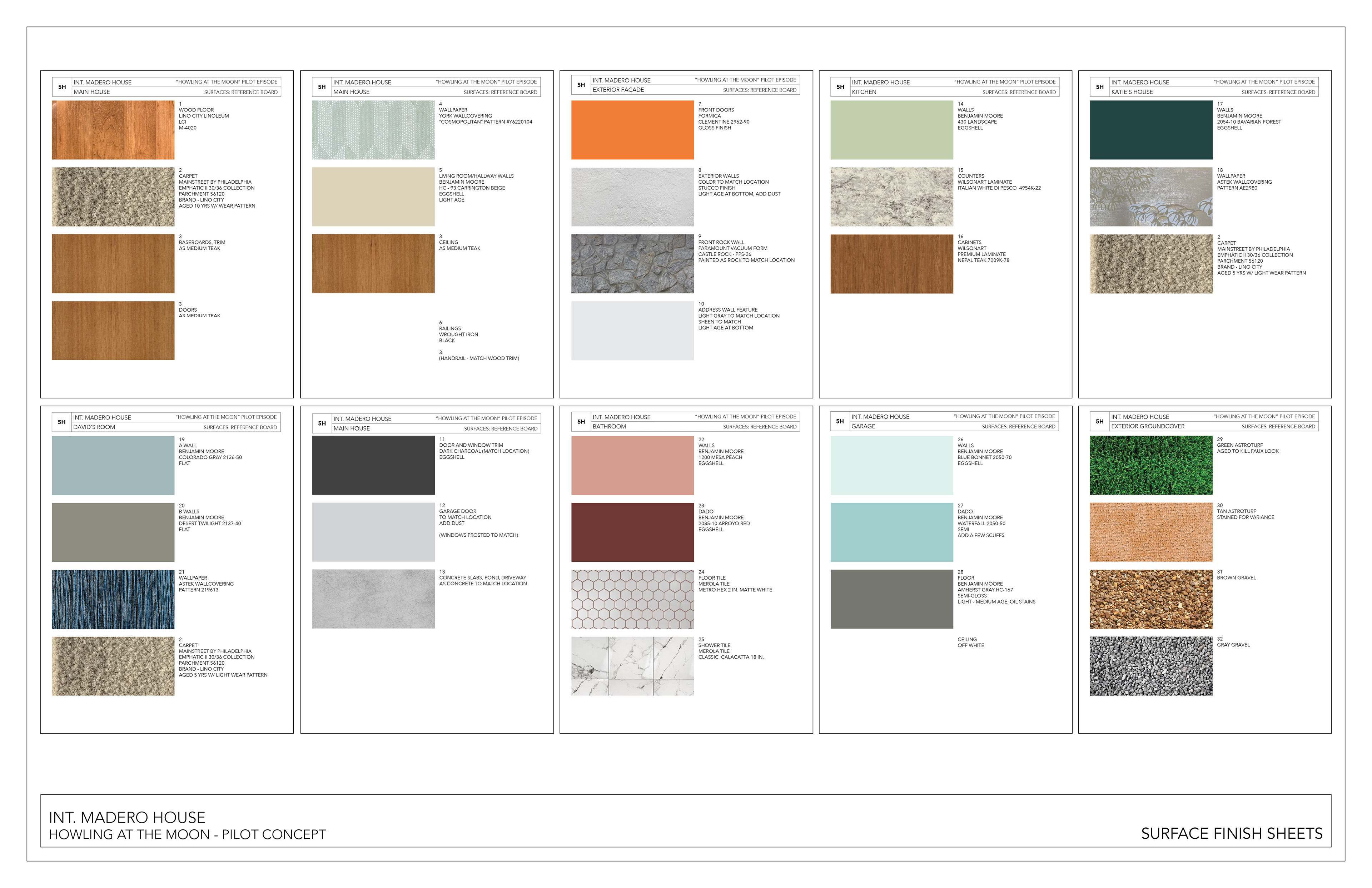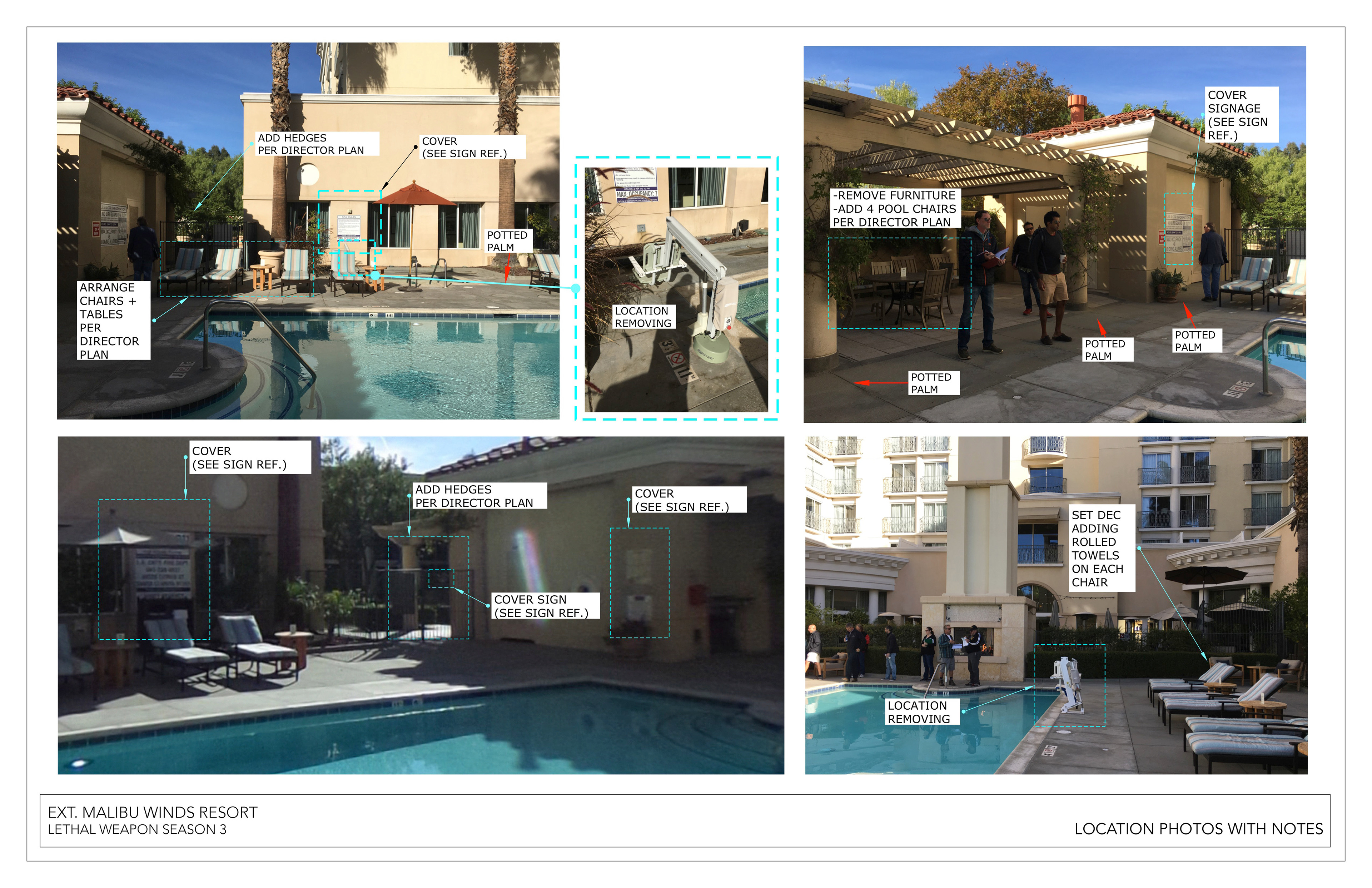 Supporting documents for internal art department reference including location notes, construction schedules, and records.